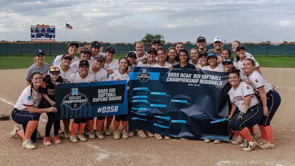 Playing on the afternoon of Gettysburg College’s 140th Commencement, the Bullets completed a perfect 16-0 season at home on Bobby Jones Field. The seven softball players in the Class of 2025 then received their diplomas from President Bob Iuliano in a special on-field ceremony.