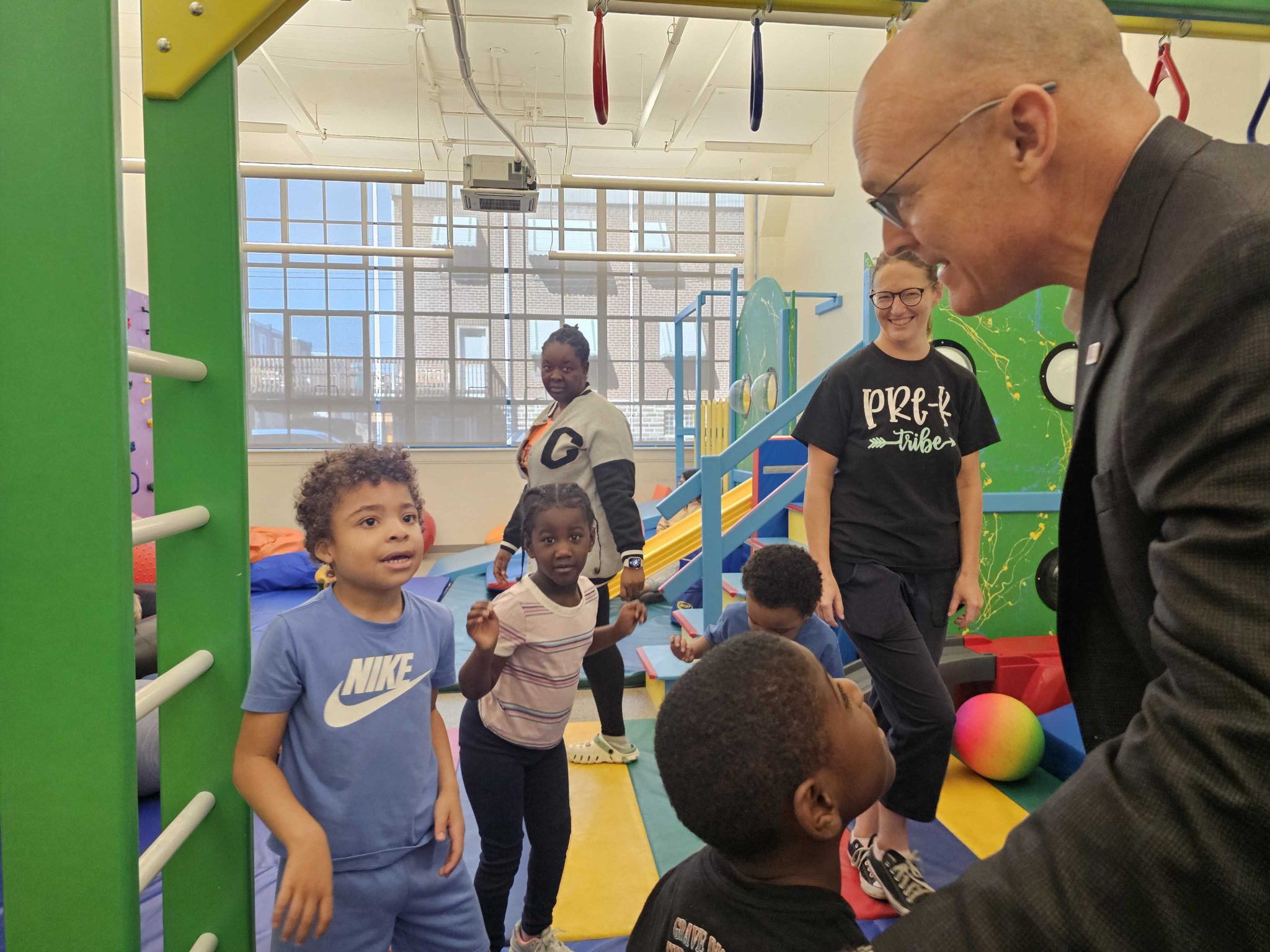 Easterseals executive Tim Kerrihard talks to students at the nonprofit’s north Philadelphia community center on September 19, 2025. Stephen Caruso / Spotlight PA