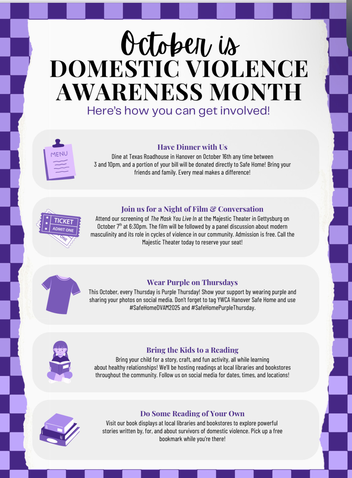 October is Domestic Violence Awareness Month (DVAM), and we have several events planned to raise awareness and support survivors. Please help spread the word 📣